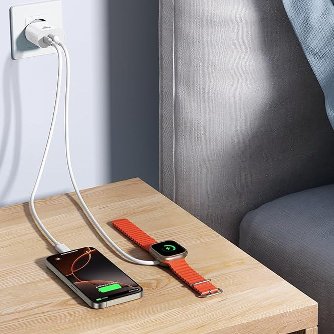 Le bloc chargeur délivre une puissance optimisée de 20 W pour la charge rapide des smartphones et accessoires, tout en s’adaptant automatiquement à l’appareil branché.